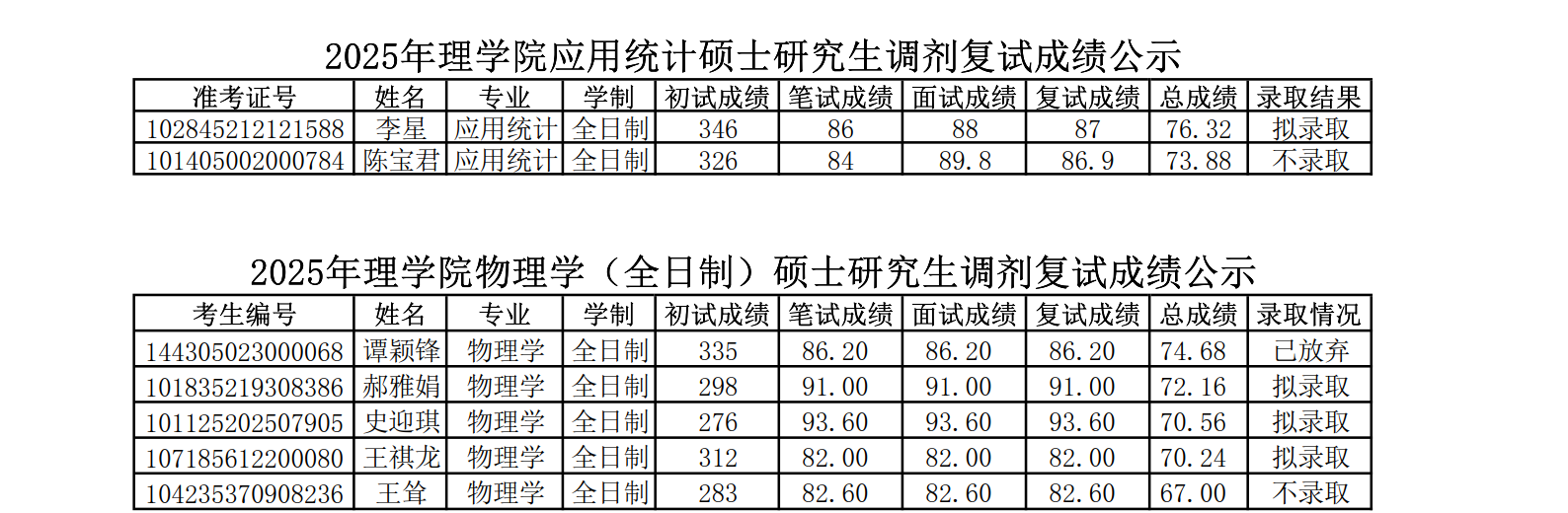 2025年调剂复试成绩公示(四)