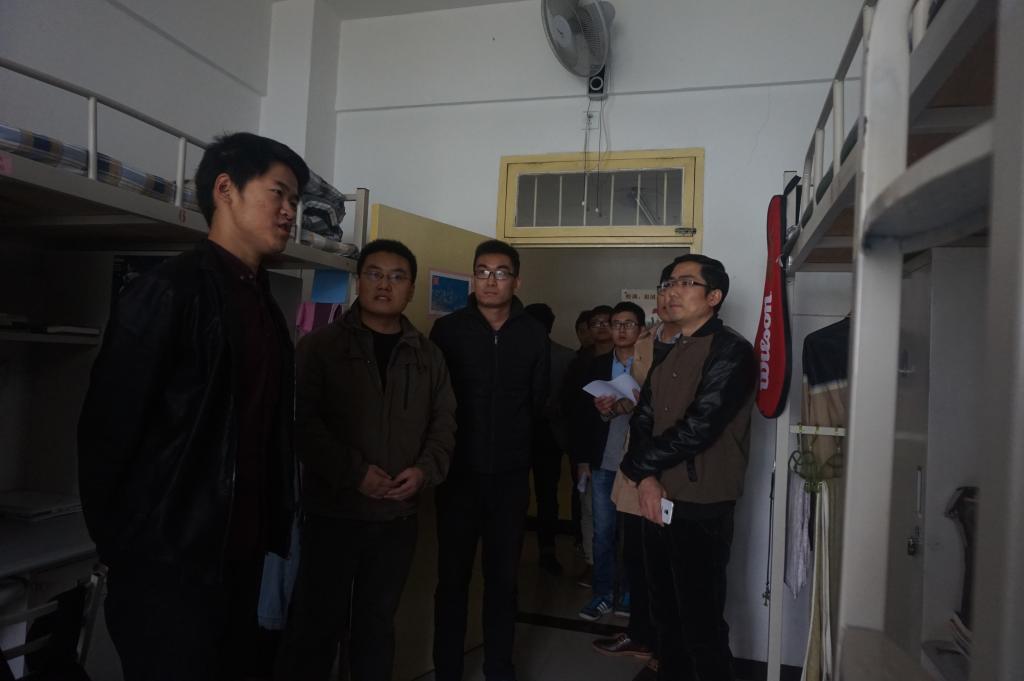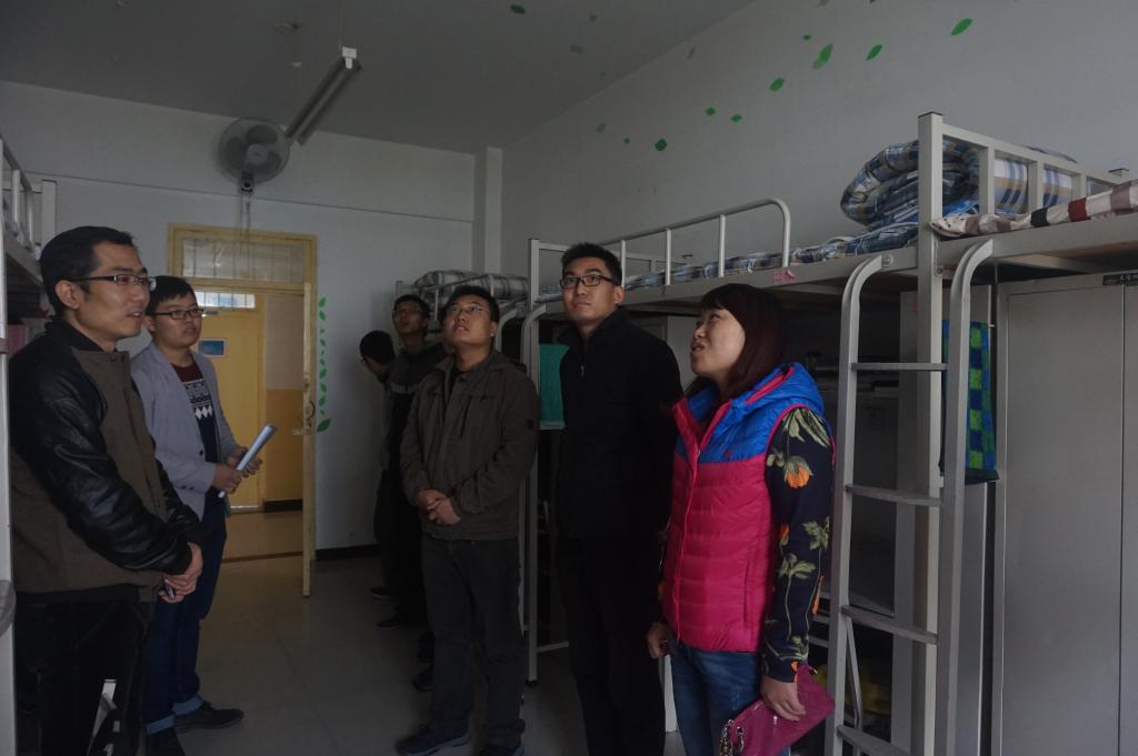 11月2日13:00,15级新生宿舍文化节正式展开检查。beats365vip官网登录入口党委副书记贾哲老师、分团委书记赵明老师、15级辅导员姚红霞老师、兼职辅导员王红博老师以及部分员工会成员进行了检查。
