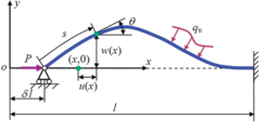纳米梁的过屈曲示意图 纳米线简支端轴向位移与载荷关系图